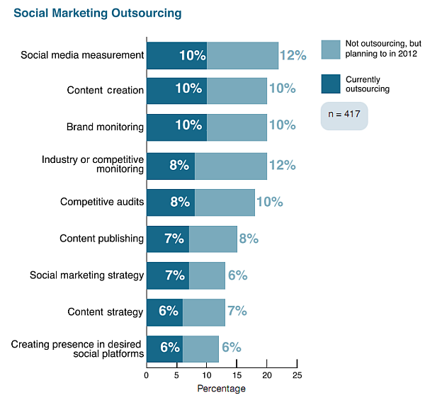 Folgende Social Media Bereiche werden laut Studie zumeist outgesourced: