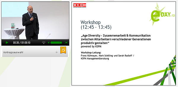 Beim Workshop zu Age Diversity mit Franz Kühmayer von KSPM ging es um die produktive Zusammenarbeit und Kommunikation zwischen Mitarbeitern verschiedener Generationen. Es wurden folgende Erfolgsfaktoren empfohlen: 1.das Verstehen der eigenen Unternehmensdemographie, 2.Führungsmethode & -stil und 3.generationen-gemischte Teams und flexible Arbeitsmodelle, die ein szenariobasiertes Arbeiten über den gesamten Lebensverlauf ermöglichen.
