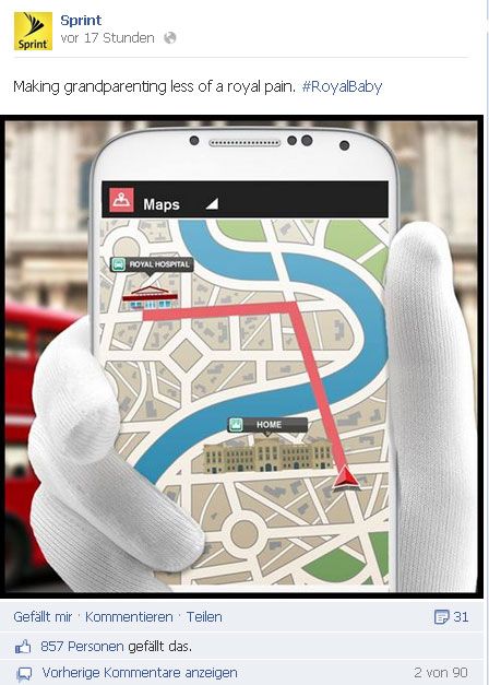 Der britische Prinz William und seine Frau Kate freuen sich über die gestrige Geburt ihres ersten Sohnes. Das royale Baby ist Anlass für den Einsatz im Content Marketing in vielen Unternehmen aus der ganzen Welt. Trends werden immer mehr für Content Marketing genutzt. Man denke nur on Oreo, wo der Stromausfall bei der US Super Bowl Meisterschaft genutzt wurde, um auf sich aufmerksam zu machen. Story bei Mashable nachlesen: Content Marketing von OREO auf Twitter Hier ein paar kreative Beispiele um im Gespräch zu bleiben