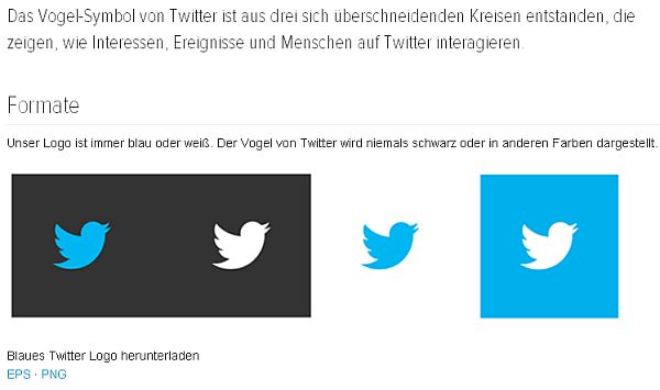 Unter Twitter Logos und Markenressourcen findet man zahlreiche hilfreiche Fotos und Angaben zur Verwendung der Marke.