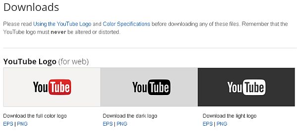 YouTube Logos und Spezifikationen kann man kostenlos herunterladen und ungefragt im Web nutzen.