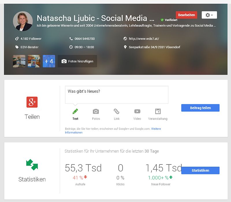 - Neue Unternehmensstatistiken für Google+ Seiten analysieren
