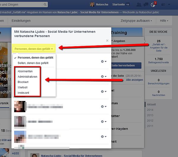 Klickt man auf der rechten Seite auf die „Gefällt mir“-Angaben erscheinen weitere Infos über die Fans inkl. Kategorisierung: