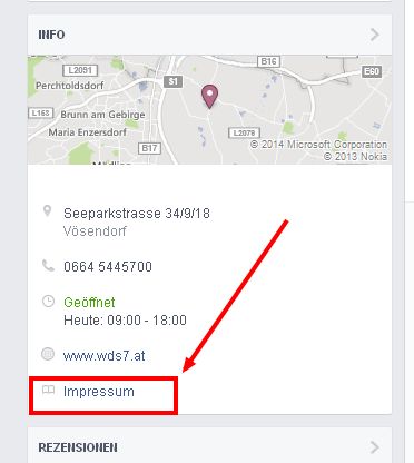 Es empfiehlt sich das „Impressum“ unbedingt anzugeben, da es sehr prominent im Info Tab links angezeigt wird: