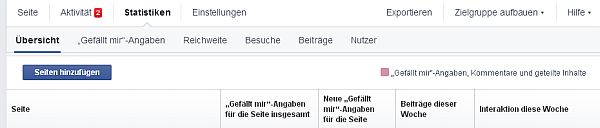 Will man die Leistung einer anderen Seite (Wachstum, Beiträge) „im Auge behalten“ findet man die Option nun unter „Statistiken“ ->> Übersicht ->> „Seite beobachten“: