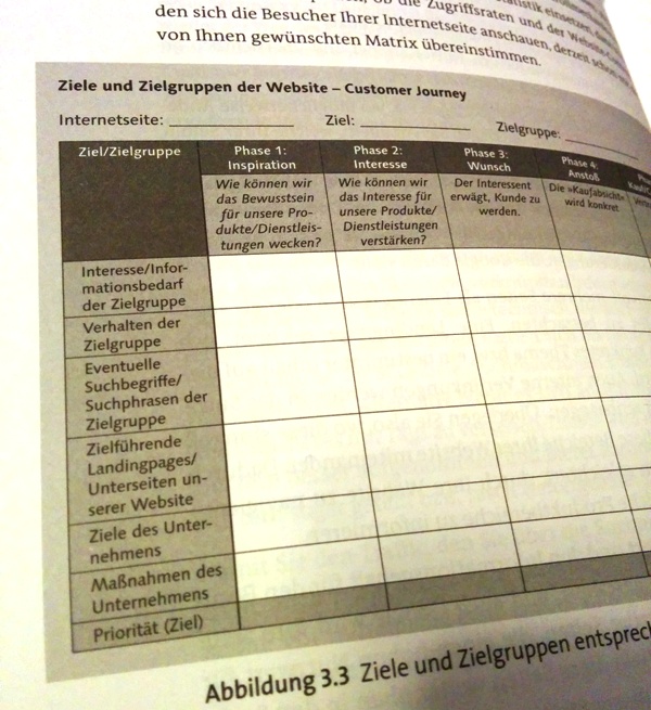 Das Buch zur Suchmaschinenoptimierung zeigt die Grundlagen, jedoch sollte eine Website vor allem der Zielgruppe dienen. Man sollte sich auch in den Weg des Kunden hineindenken, die „customer journey“, ist auch entscheidend. Die Webseiteninhalte sollten entlang der Interessen der angestrebten Zielgruppe ausgerichtet sein. Das wird im Buch sehr gut schrittweise erklärt. Man sollte den Nutzenwert und den Inforamtionsgehalt für Besucher so hoch als möglich halten.