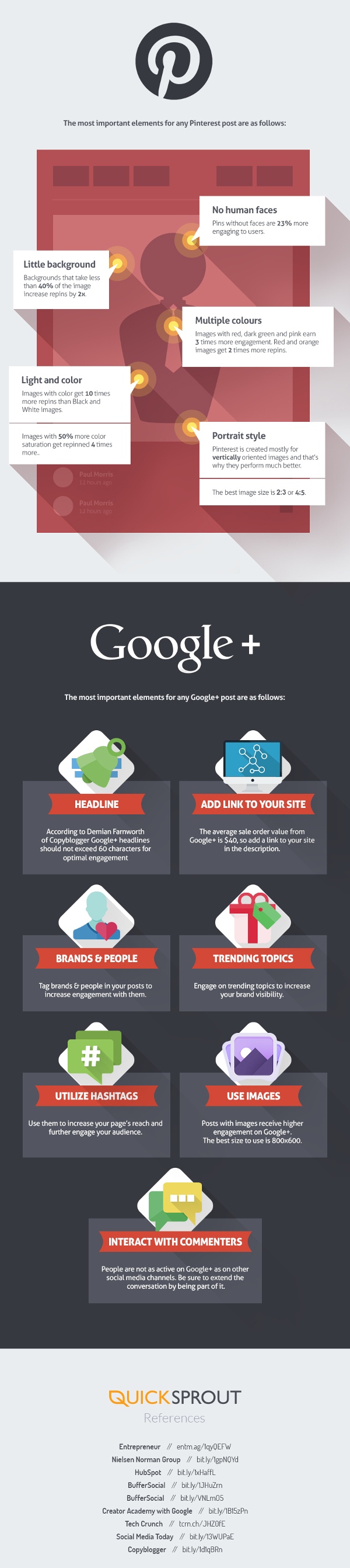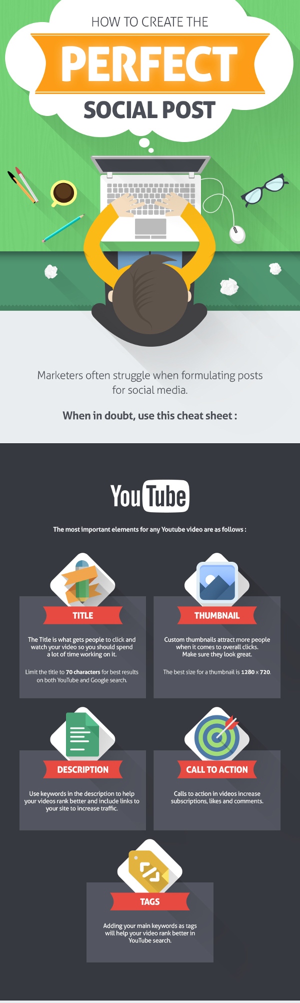 Angeregt durch die Infografik von Quicksprout fasse ich den Aufbau von Social Media Beiträgen auf Facebook, YouTube, Twitter und Pinterest, ergänzt durch meine Erfahrungen, zusammen. So sollte der Aufbau eines perfekten Social Media Beitrages für die sozialen Netzwerke aufbereitet sein.